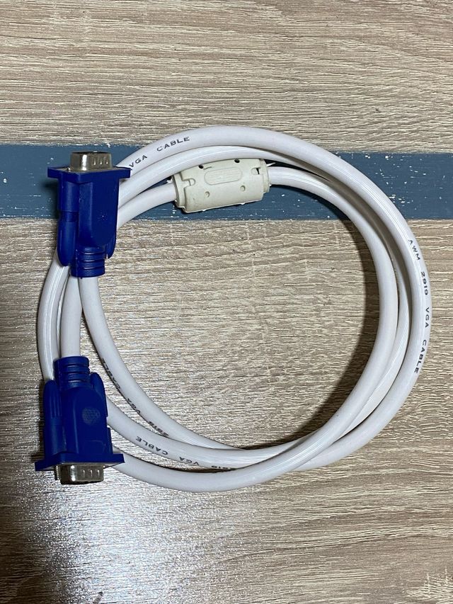 Cable de conexión VGA de 1 metro de longitud. Ideal para conectar monitores o proyectores. - Conectores azules y plateados. - Cable blanco.