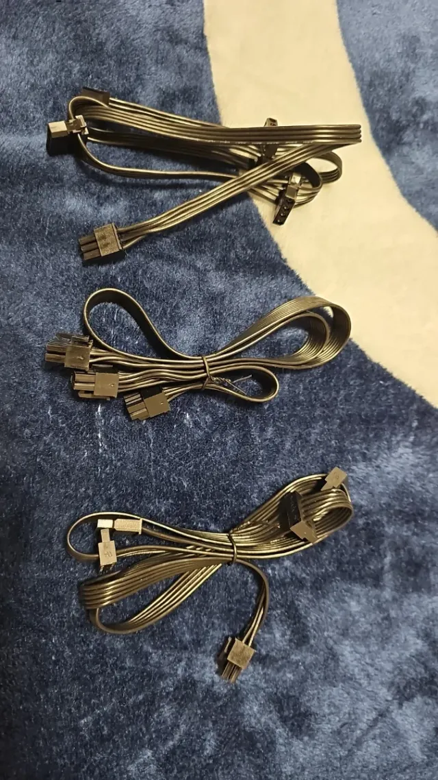 Conjunto de cables de alimentación para componentes de PC. - Cables negros. - Conectores de diferentes tipos.