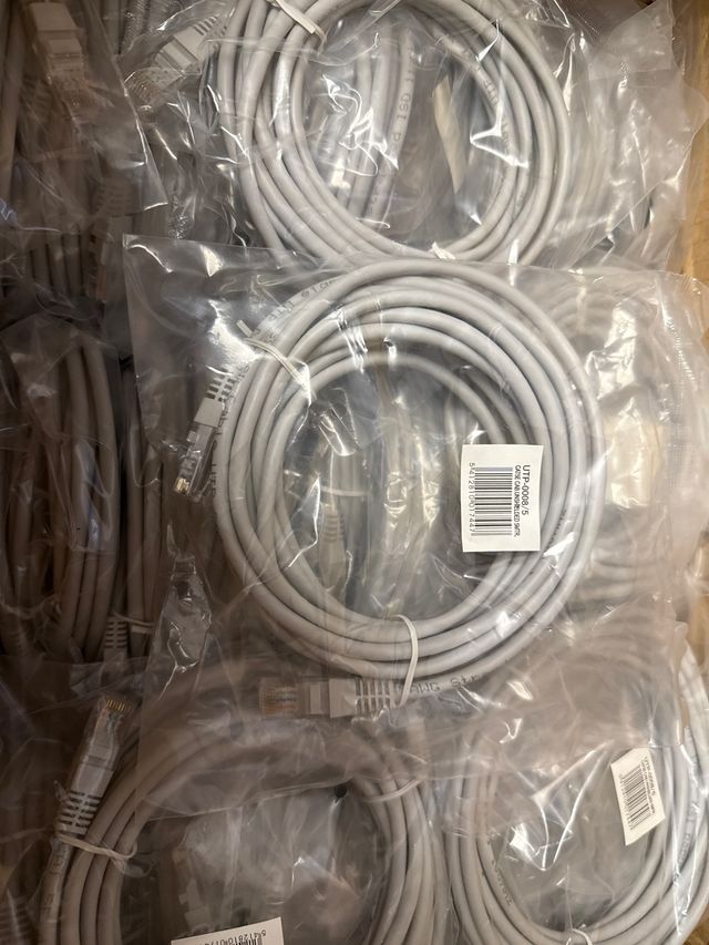 Cables de red nuevos de cinco metros a 1 euro cada uno.