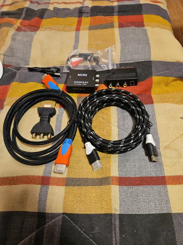 - Cable HDMI a HDMI con conectores naranjas y azules.