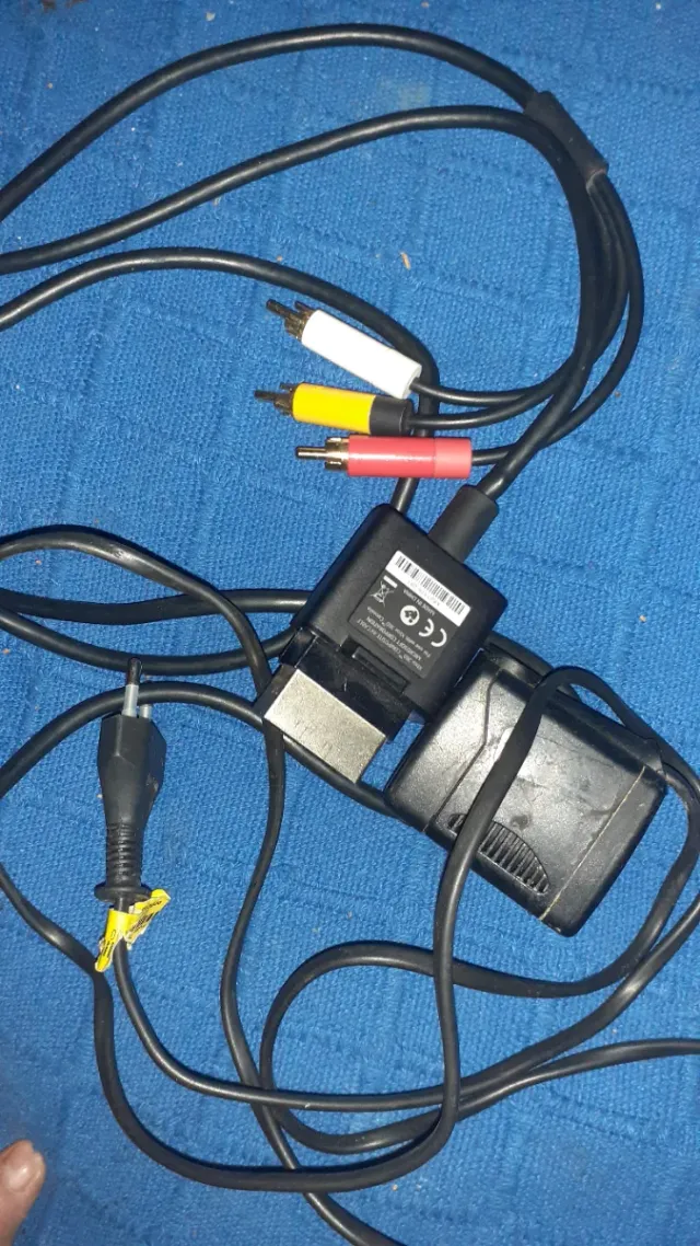 Conjunto de cables para consolas Xbox. - Cable AV con conectores RCA (rojo, blanco, amarillo). - Adaptador de corriente. - Cable de alimentación.