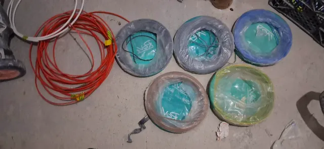 Se venden varios rollos de cable. - Cable rojo. - Cable gris. - Cable azul. - Cable verde. - Cable marrón.