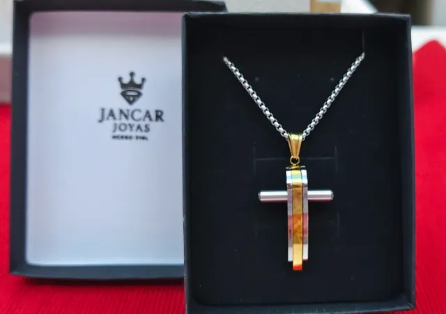Cadena Acero Inoxidable Cruz Bicolor Jancar Joyas