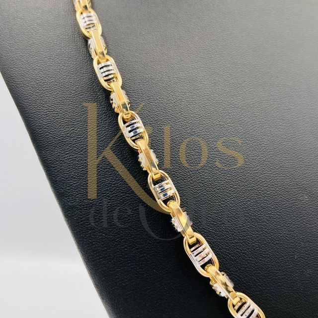 CADENA BARBATE BARRAS BICOLOR 6.5MM 18K