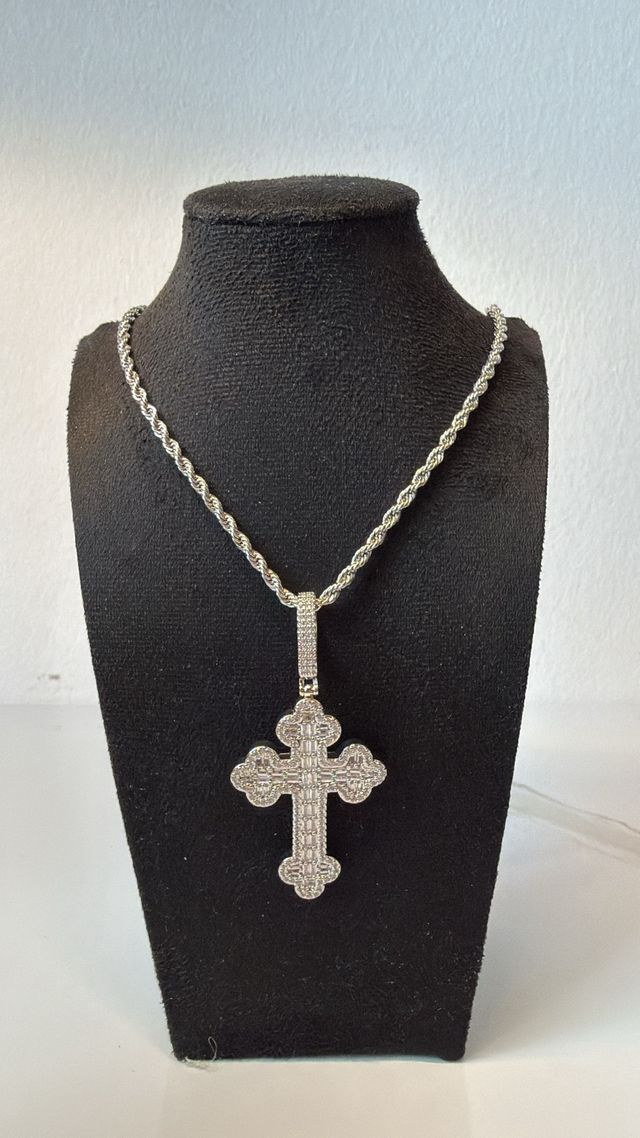 Cadena Cruz Brillantes Zirconita Plata
