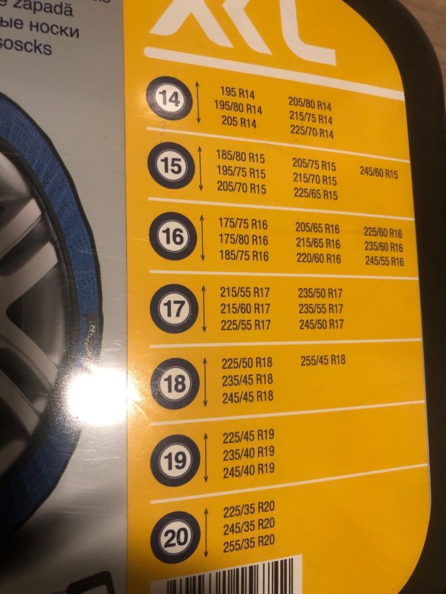 Cadenas de tela homologadas para nieve nuevas sin usar.