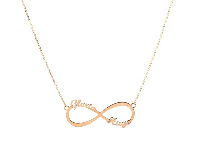 Detalles del productoCadena de oro de 9 kilates con colgante infinito con hasta 4 nombres a elegir