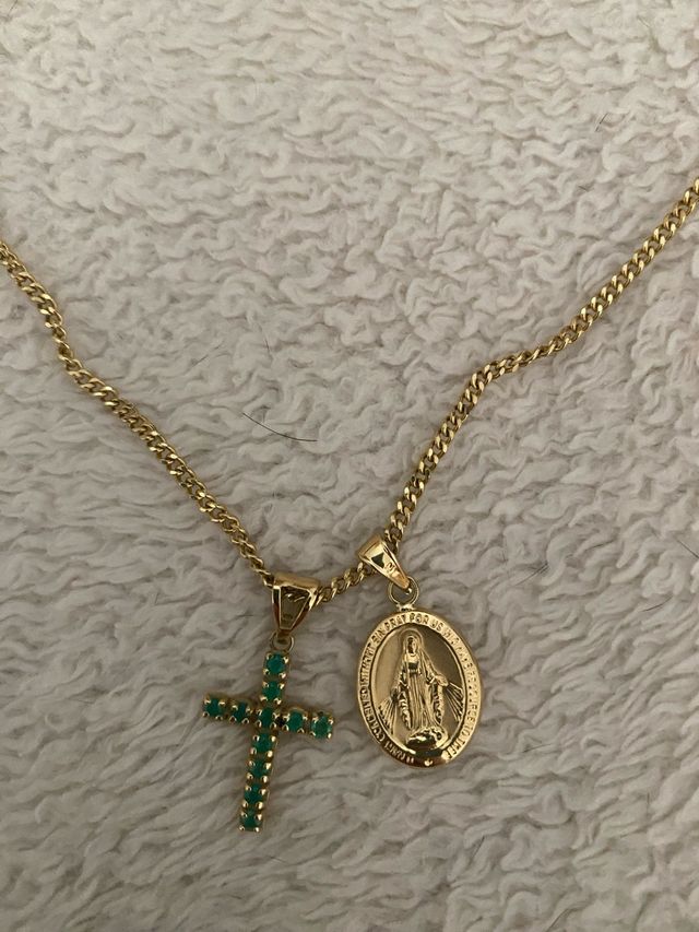 Cadena Oro 18k con Colgante Cruz Esmeralda