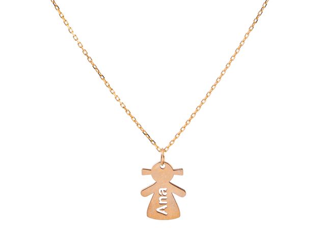 Cadena oro 9K colgante de niña y nombre (a elegir)