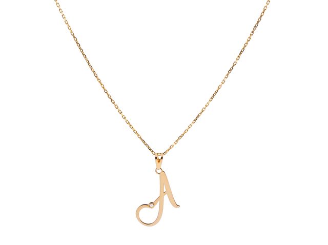 Detalles del productoCadena de oro de 9 kilates con inicial de diseño atrevido y una circonita