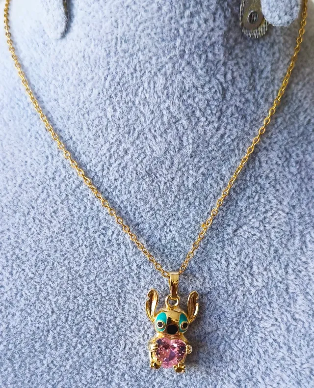 Cadena Oro Laminado 18k Stitch Corazón Rosa