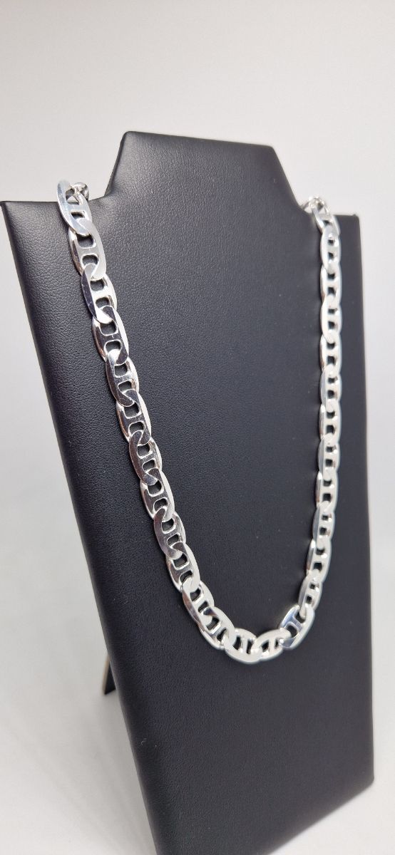 Cadena de plata de ley de 925mm. Mide 60 cms de largo y 8,5mm de ancho. Pesa 53,3 grs. Ref 02250