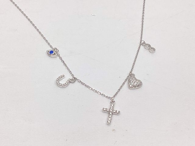 Detalles del productoEl precio mostrado es el de venta en nuestra tienda. El precio de este producto en nuestra página web puede ser diferente. Este artículo está disponible en nuestra tienda de Murcia. cadena plata 925mm con piedra con circonita 19 2.5cm CC023_G21420_0 es un objeto que se ofrece en estado a estrenar. Todos nuestros productos cuentan con garantía de 3 años y un plazo de devolución de 14 días. Gramos: 2.7 | Marca: Converters | Contraste: Si | Tipo de oro en kilates: Plata primera ley (plata 925mm con piedra) | Detalles joya: Cadena con colgante infinito, corazon, cruz, herradura y ojo con piedras | Piedras: 0 | Color de las piedr