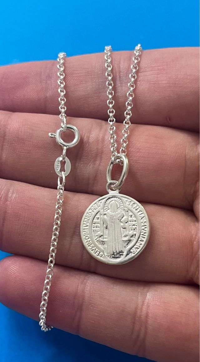 Cadena Rolo Micro Y Medalla San Benito Plata 925