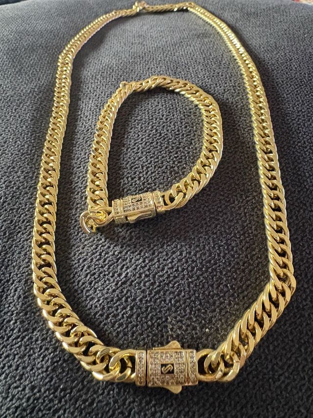 Cadena y pulsera dorada con cierre