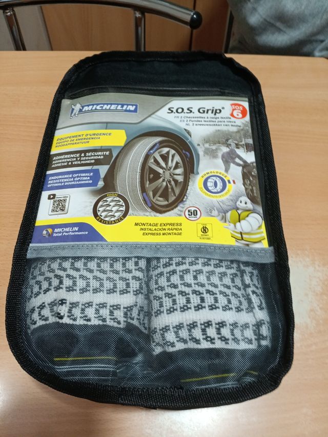 Detalles del productoCadenas de lona ajustables de coche marca Michelin. Para varias medidas, faciles de colocar.Su precio 100e.Estan sin estrenar como se puede ver.Se venden por cambio de coche.Sirven para llanta 14,15,16,17,19.Medidas en el anunciado.