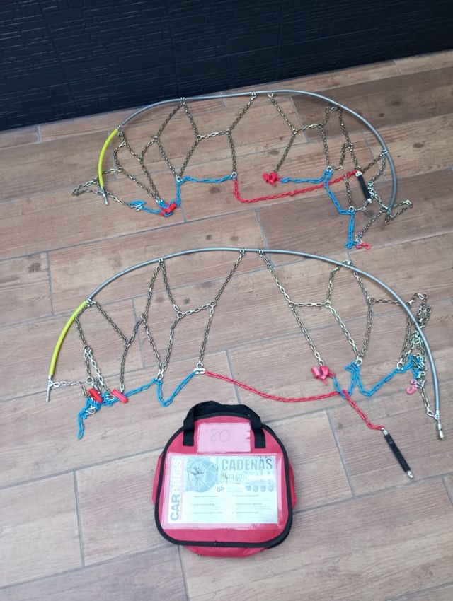 Detalles del productoSe vende cadenas de coche, no se han usado nunca. Las compré para una Ford torneo currier talla 80 . Llantas de 15. Yo tenía neumáticos de 210/60/15. Pero sirven para otras tallas.