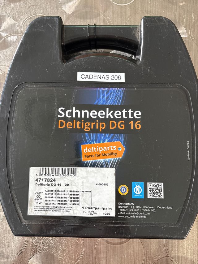 Detalles del productoCadenas para la nieve marca Deltigrip, modelo DG 16.Yo la utilizaba en un Peugeot 206 XT. No hago envíos.