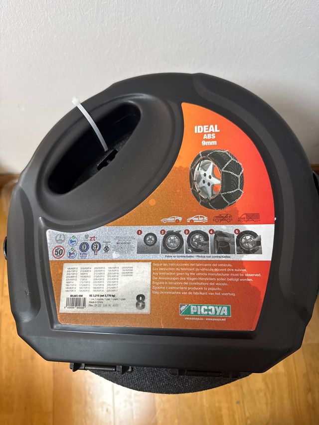 Cadenas para la nieve de la marca IDEAL, modelo ABS con 9mm de grosor. - Incluye instrucciones de montaje. - Aprobadas para uso en carretera. - Aptas para automóvil