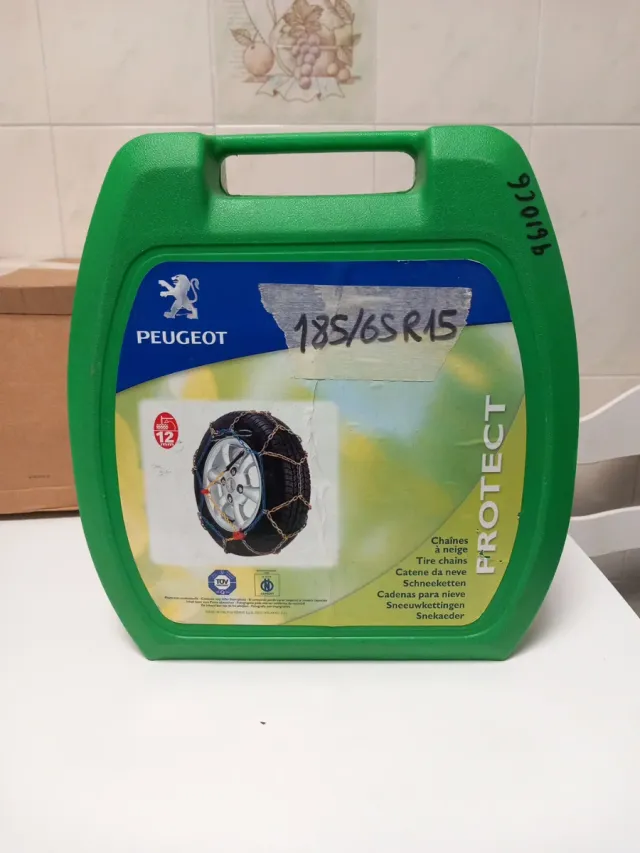 Cadenas para nieve de la marca Peugeot, modelo Protect. - Tamaño: 185/65 R15. - Incluye caja de almacenamiento. - Homologación TÜV.