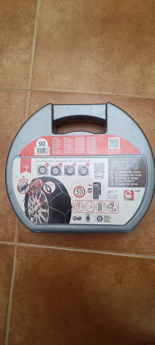 Cadenas para la nieve marca RD-9, modelo Vip. Nuevas, sin usar Se adjunta foto con las medidas compatibles