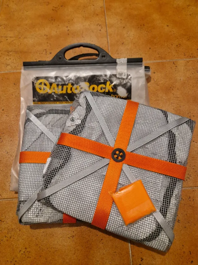Detalles del productoCadenas textiles para nieve de la marca Autosock, modelo 695. No se han usado nunca. (las imágenes del embalaje están borrosas de llevar la bolsa en el maletero).