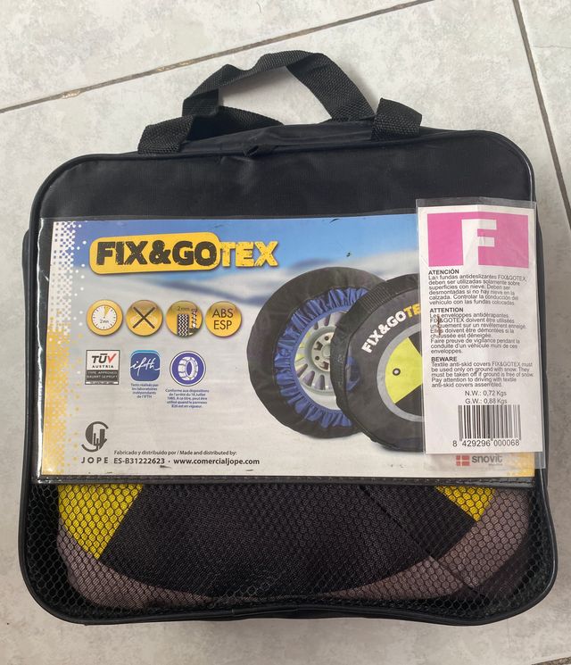Cadenas de tela para la nieve. Adecuadas para múltiples tamaños de ruedas, ver las fotos. Nunca las he sacado de la caja. Impolutas, nunca te dejarán tirado.