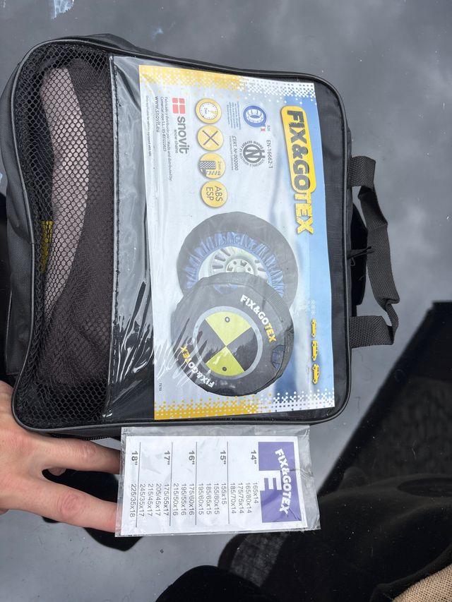 Detalles del productoCadenas de tela para nieve de la marca FIX&GOTEX, diseñadas para mejorar la tracción en condiciones invernales.