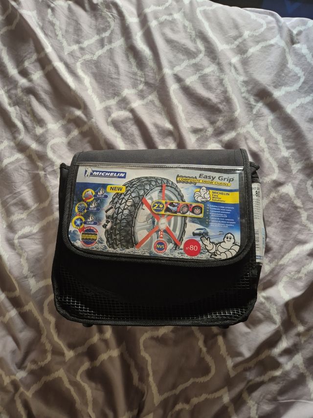 Detalles del productoMichelin Easy Grip n°80, cadenas para nieve para coche. Están en perfecto estado y se venden con su bolsa de transporte.
