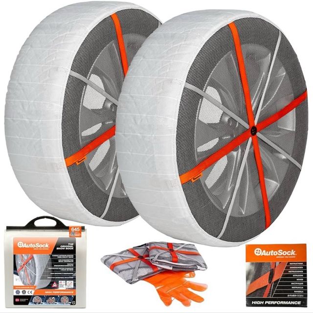 Cadenas de tela para la nieve AutoSock HP645. Como nuevo, sólo usado una vez. Comprado en Japón. - Incluye dos unidades. - Guantes de instalación.