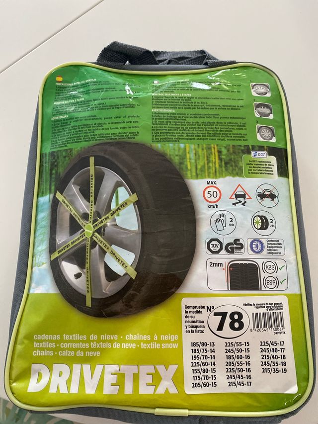 Detalles del productoCadenas textiles para nieve Drivetex, nuevas a estrenar. Ideales para circular con seguridad en condiciones invernales.