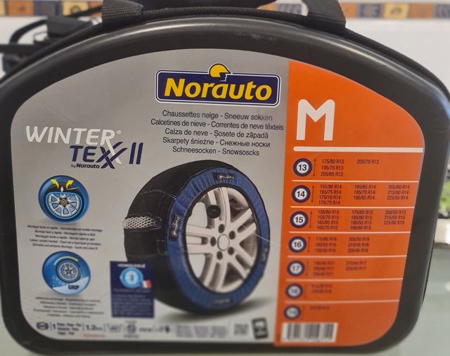 Detalles del productoCadenas textiles para nieve Norauto, talla M. Ideales para circular con seguridad en invierno.
