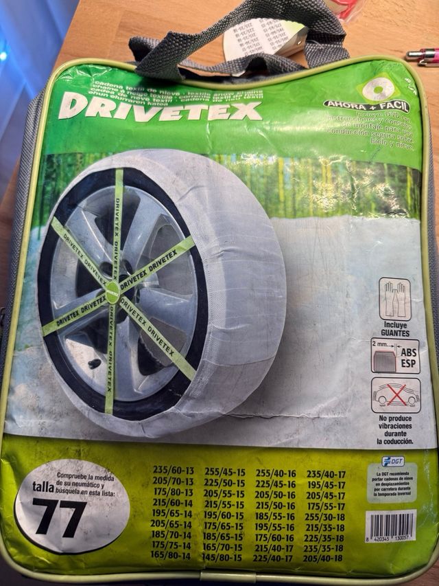 cadenas de nieve sin estrenar, en perfecto estado y con guantes e instrucciones