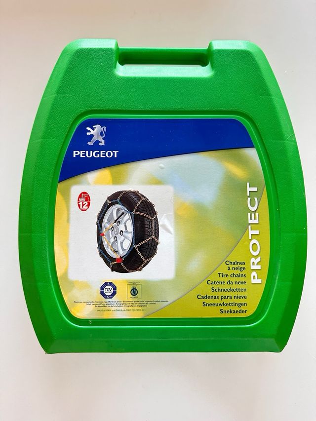 Juego de cadenas metalicas para coche. Marca PEUGEOT. Solo las he usado 1 vez para probarlas en el coche. Las vendo porque no me hacen falta.