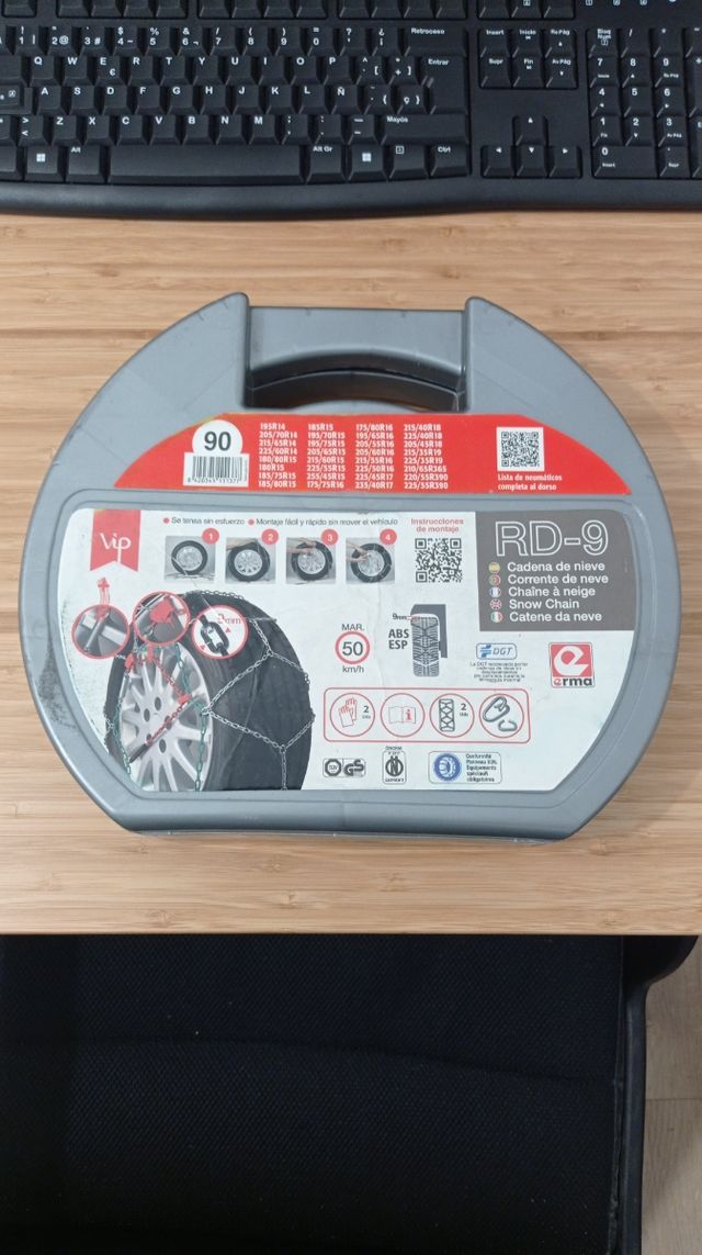 Detalles del productoCadenas para nieve o hielo para el coche. Se colocan sin tener que mover el coche y de forma muy sencilla y rápida. Talla 90. RD-9 (cadenas de 9mm).