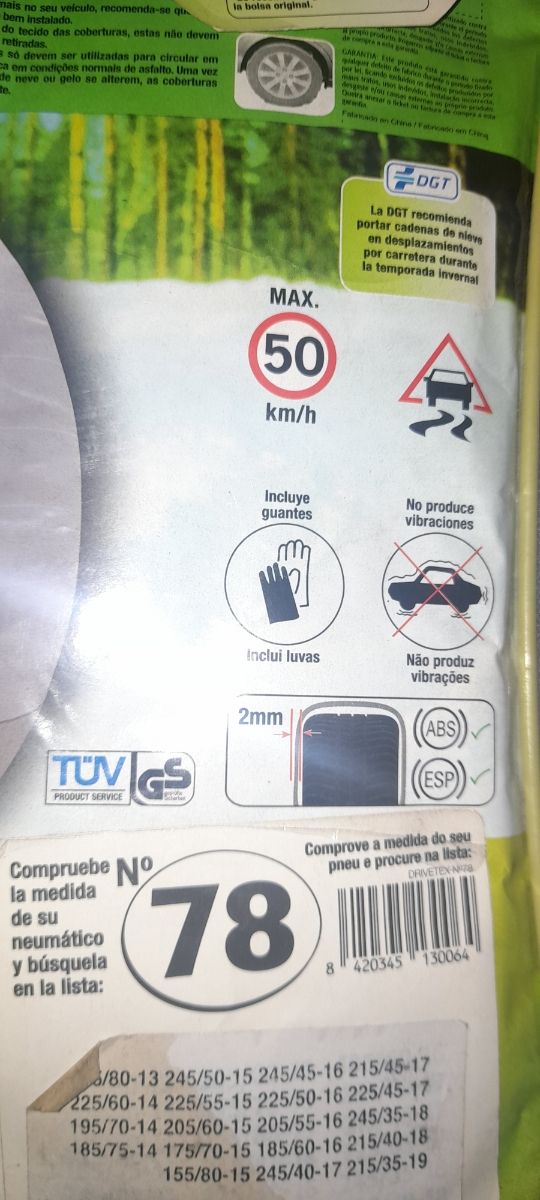 Cadenas para nieve de tela,nunca usadas,sin estrenar,ni se han sacado de la bolsa.Adecuadas para ruedas de 205/55/16.