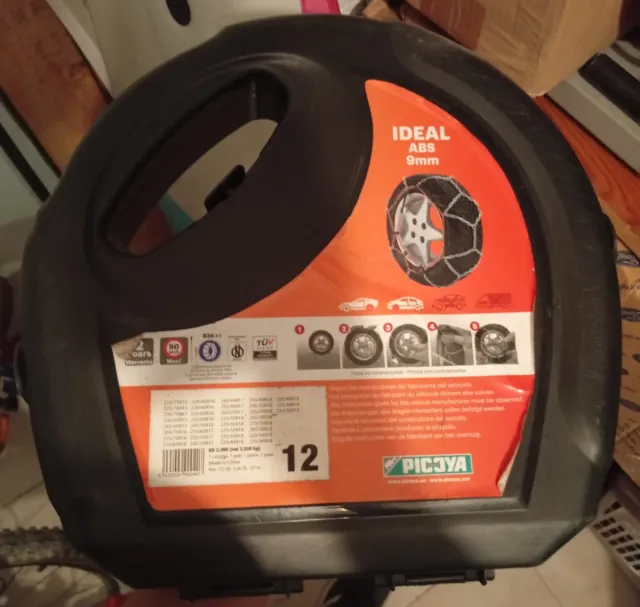 Cadenas para nieve de la marca IDEAL, modelo ABS con 9mm de grosor. - Incluye instrucciones de montaje. - Sin estrenar por cambio de coche.