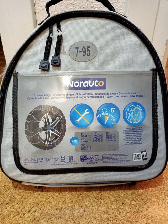 Detalles del productoCadenas para nieve Norauto, modelo 7-95, en su funda original. Totalmente nuevas, con precinto.