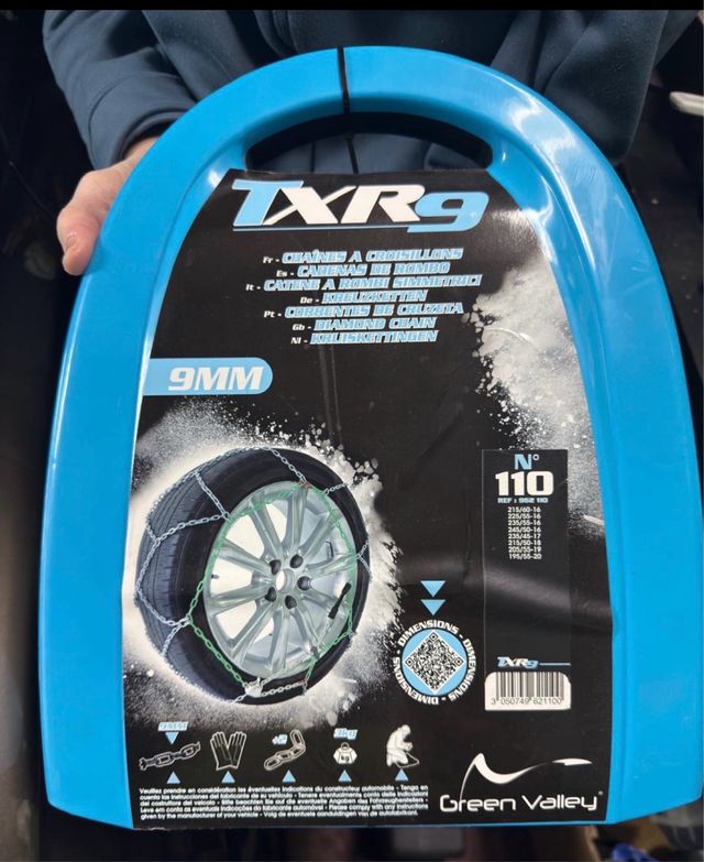 Cadenas para nieve TXR9 de 9mm, talla 110, sin estrenar. Ideales para condiciones invernales.