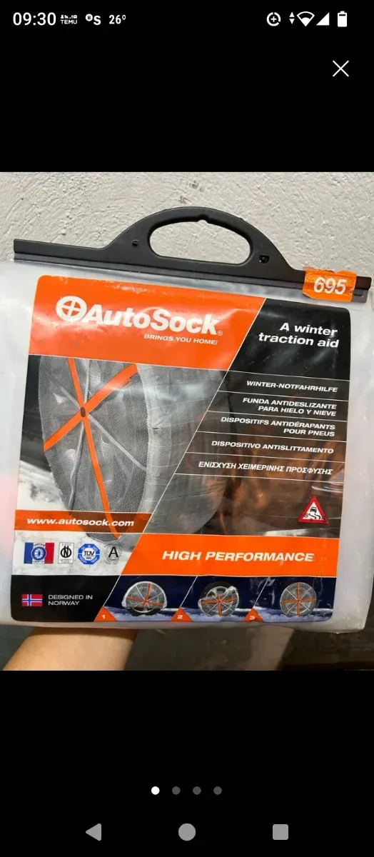 Detalles del productoCadenas textiles 695.para la tracción en nieve o hielo. De altas prestaciones tecnológicas Noruega medidas en fotos.