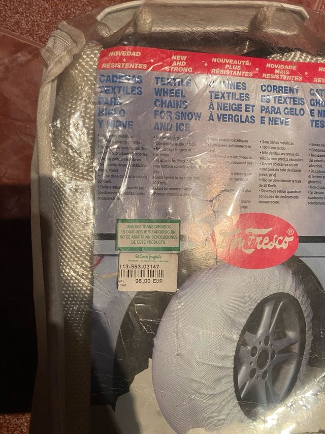 Detalles del productoCadenas textiles para la nieve y el hielo, marca TirFresco. Son una alternativa ligera y fácil de instalar a las cadenas metálicas tradicionales.