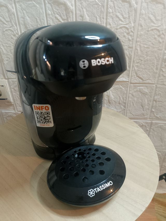 Cafetera de cápsulas de la marca Bosch, modelo Tassimo. - Color negro. - Diseño compacto.