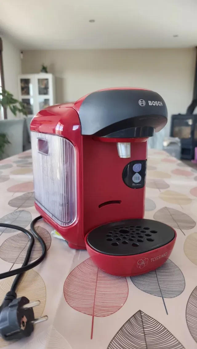 Detalles del productoCafetera de cápsulas Bosch Tassimo en color rojo. Ideal para preparar tu bebida favorita.
