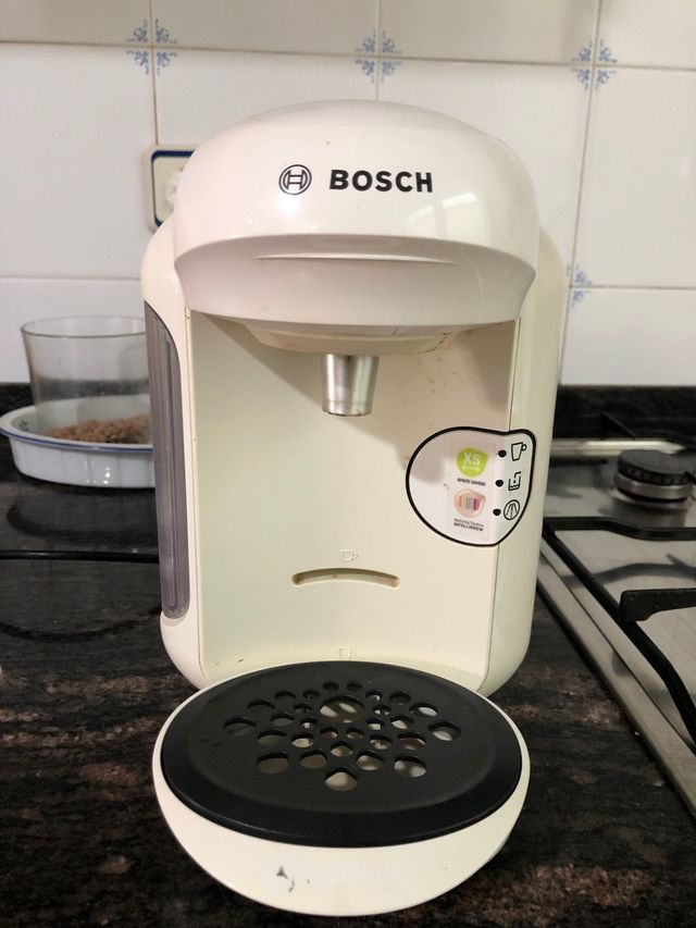 Detalles del productoCafetera Bosch Tassimo de cápsulas, en color blanco crema. Está en buen estado, aunque presenta algunas señales de uso.