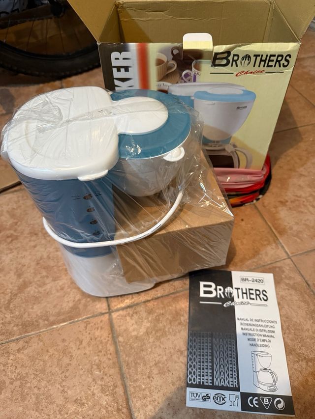Cafetera de goteo Brothers Choice, modelo BR-2420. Incluye manual de instrucciones. - Diseño compacto y funcional. - Color blanco y azul. - Apta para uso doméstico.