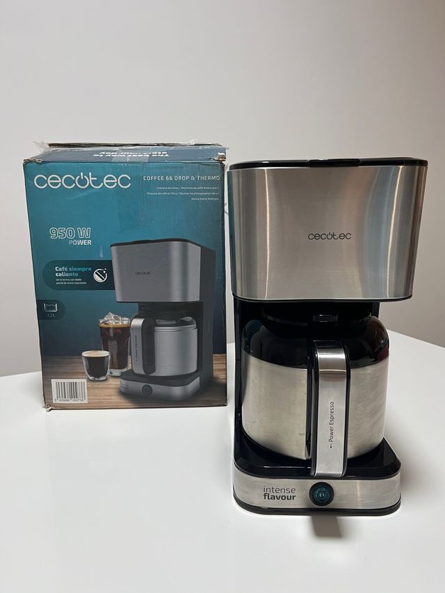 Detalles del productoCafetera de goteo Cecotec con jarra térmica que mantiene el café caliente durante horas. Está nueva, fue un regalo que no he utilizado.