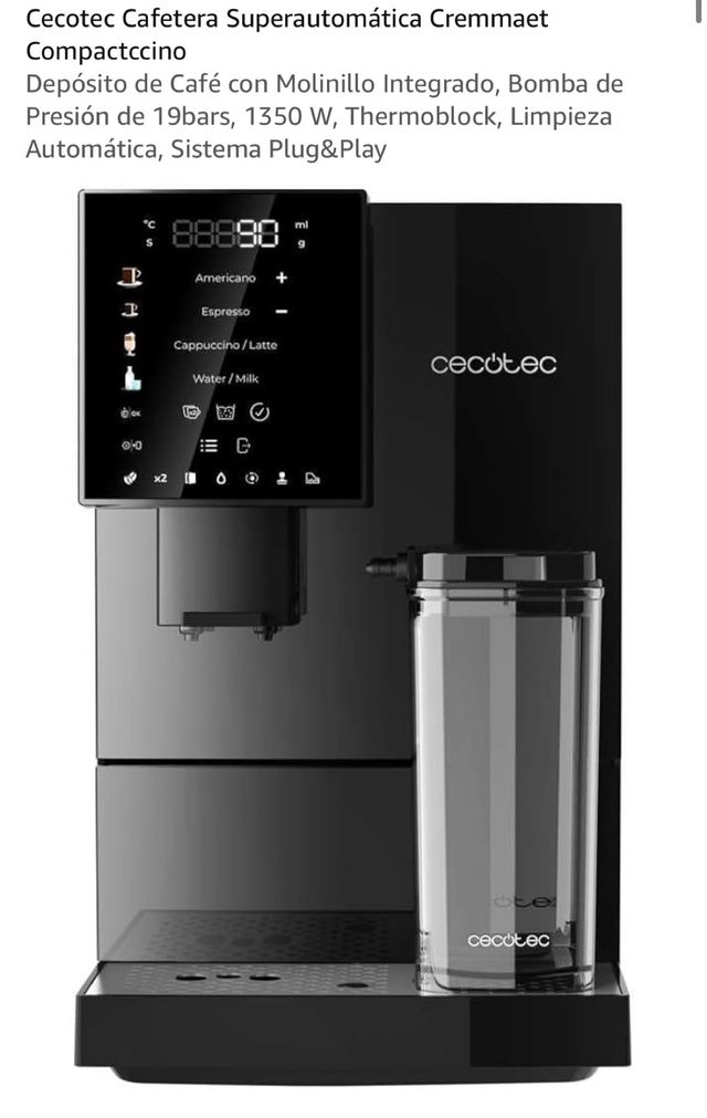 Detalles del productoCafetera superautomática Cecotec Cremmaet Compactccino, prácticamente nueva.