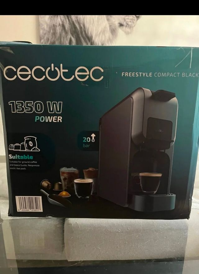 Cafetera Cecotec Freestyle Compact Black de 1350W. - Compatible con café molido, Dolce Gusto, Nespresso y K-fee. - Presión de 20 bares.
