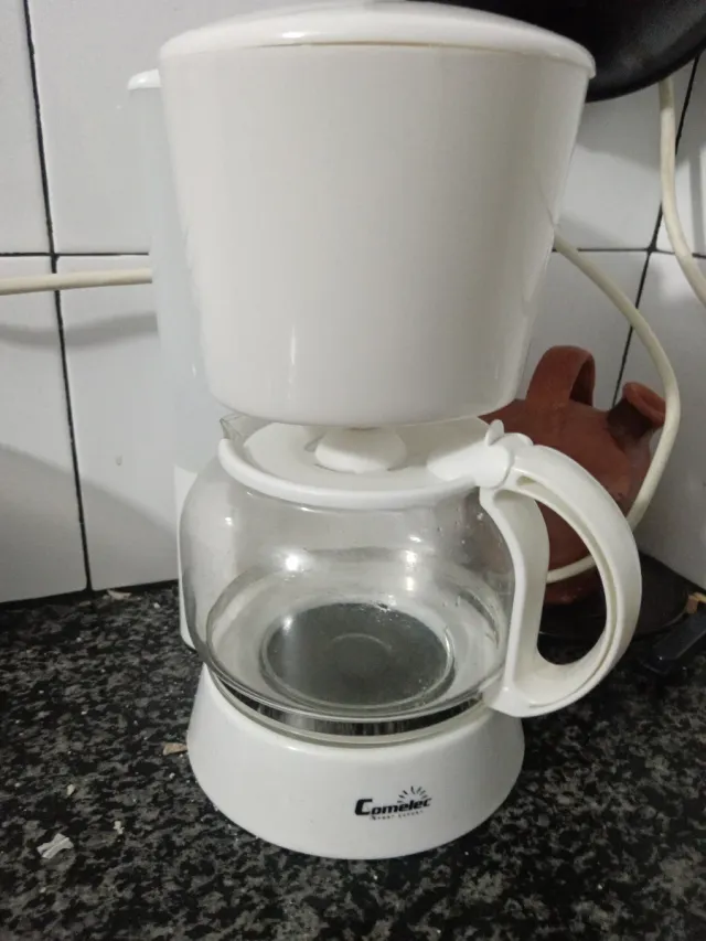 Cafetera de goteo con jarra de cristal. - Color blanco. - Jarra de cristal. - Marca Comelc.
