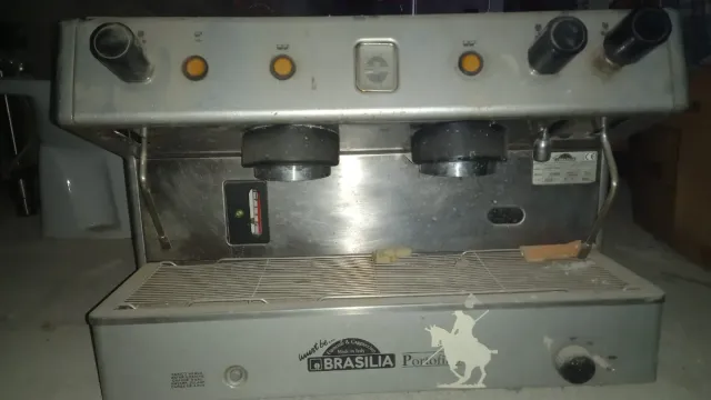 Cafetera profesional de bar de la marca Brasilia, modelo Porfiri. - Diseño robusto en acero inoxidable. - Dos grupos. - Indicador de nivel de agua.